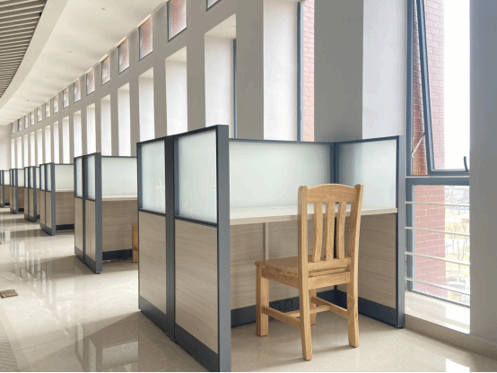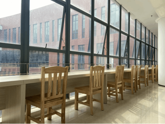 自修桌:200多张新阅览桌,单人、四人……各种款式应有尽有,窗边的桌子还能欣赏超美的风景,学习累了抬眼就能放空一下。而且,每张桌子都有隔板,让你专注学习,互不打扰。