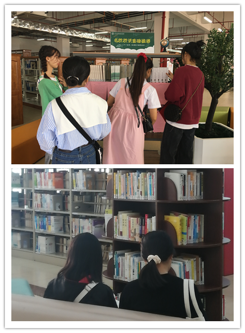图书馆围绕“大学第一课”主题,设立了“名校校长重磅推荐书目”和“新生第一课”专题书架,制作阅读书单,对推荐书目进行详细介绍,用生动的文字激发新生借阅图书的兴趣。活动现场,学生驻足在图书专架前,细细品味阅读的乐趣。