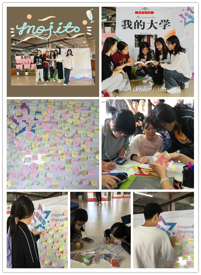 图书馆还开展了线上线下互动活动“合影留言墙”与“初遇图书馆”,新生在留言墙上写下对自己、对图书馆想说的话,或在广东交院图书馆微信公众号留言,发表自己对图书馆的初印象,“来广交的第二天/激动/打卡图书馆......加油!冲!”“努力拼搏的不仅仅是梦想,还是自己未来要走的路。加油向上,朝着理想中的自己前进。”一条条留言,都展现了青春的风采,对未来的期待。