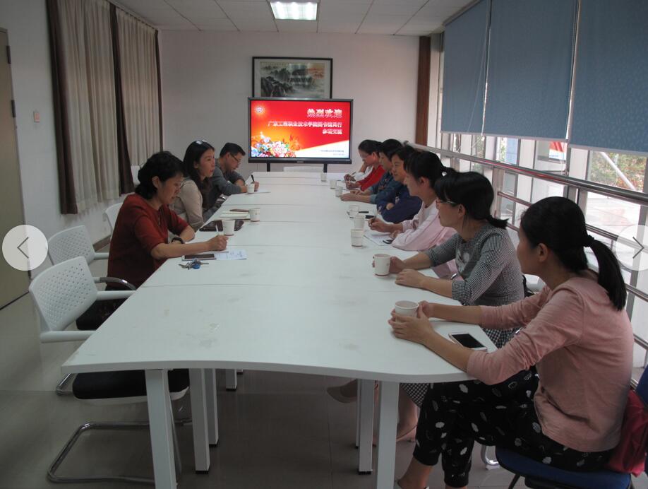 10月31日下午,广东工程职业技术学院图书馆馆长王海英一行7人来到我校天河校区图书馆进行参观调研。学院图书馆王玉鸿馆长及相关老师在图书馆四楼多媒体学习室对来访客人进行了热情接待。