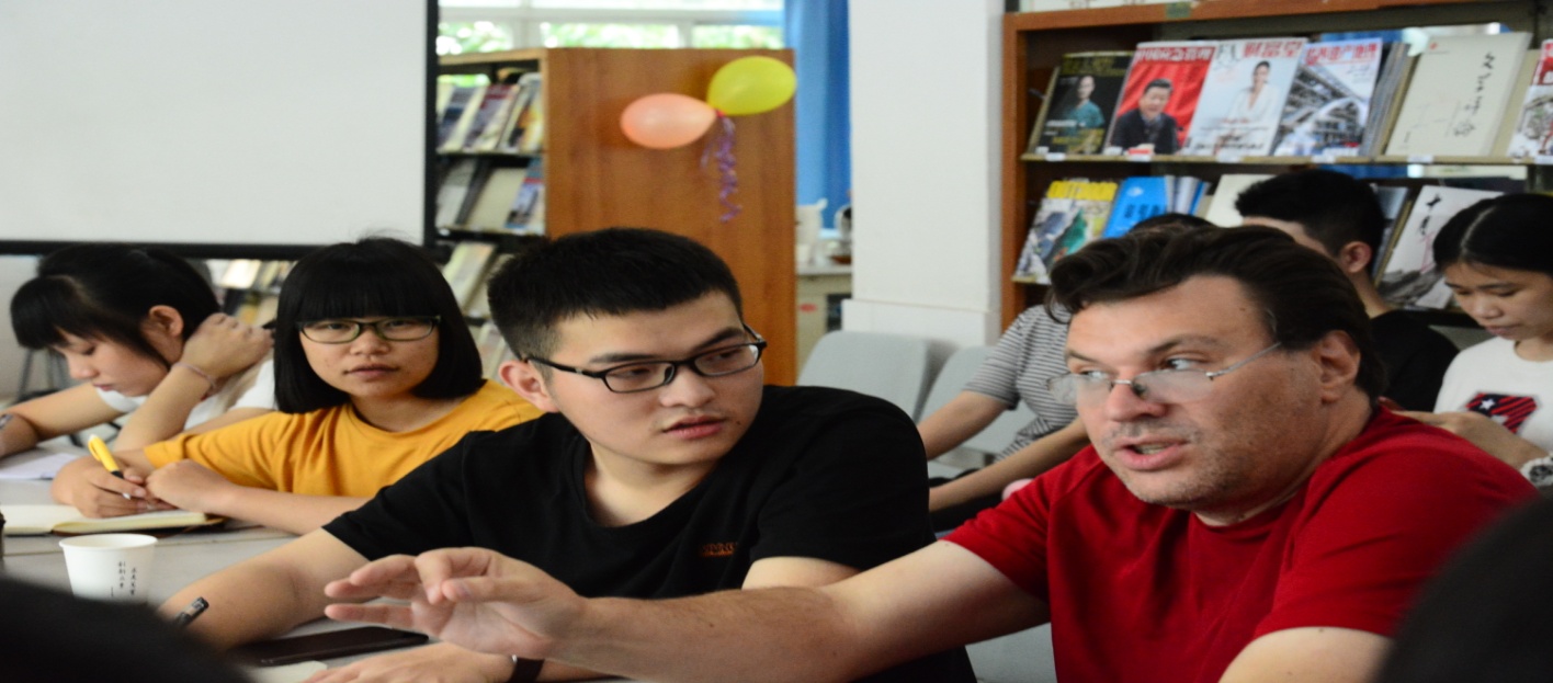 3月31日下午2点30分,北校区图书馆三楼阅览室迎来了Robert Lynn Courtright老师和慕名而来的同学们。几杯茶水,几句问候,伴着悠扬的英文乐曲,激动有趣的纯英语交流会开始了。会上,经过一轮紧张,局促的自我介绍后,Robert老师开始传授学习英语的方法,并鼓励大家大胆的听说读写。他说即使每日记三个单词,一年后都将会是一个大的收获。Robert老师用自己学汉语的经历告诉大家,学语言贵在坚持。随后,Robert老师用一句不太流利的汉语“可以(ke yi)”,启发着同学们在笑声里更加自信的去学好英语。接着大家绘声绘色的开始话家常,时而谈饮食、时而谈旅游,一改起初自我介绍时的拘谨,英语交流会进入了热潮。在这里,原本“土生土长”的中国式英语交流在外教Robert老师的带领下变得“洋腔洋调”,大家谈到兴奋处,开始“英文歌唱比拼”,会场里笑声掌声接连不断。交流会持续了近两个小时,大家久久不肯散去。最后,图书馆与Robert老师初步达成了共建英语角,不定期开展交流会的意向。