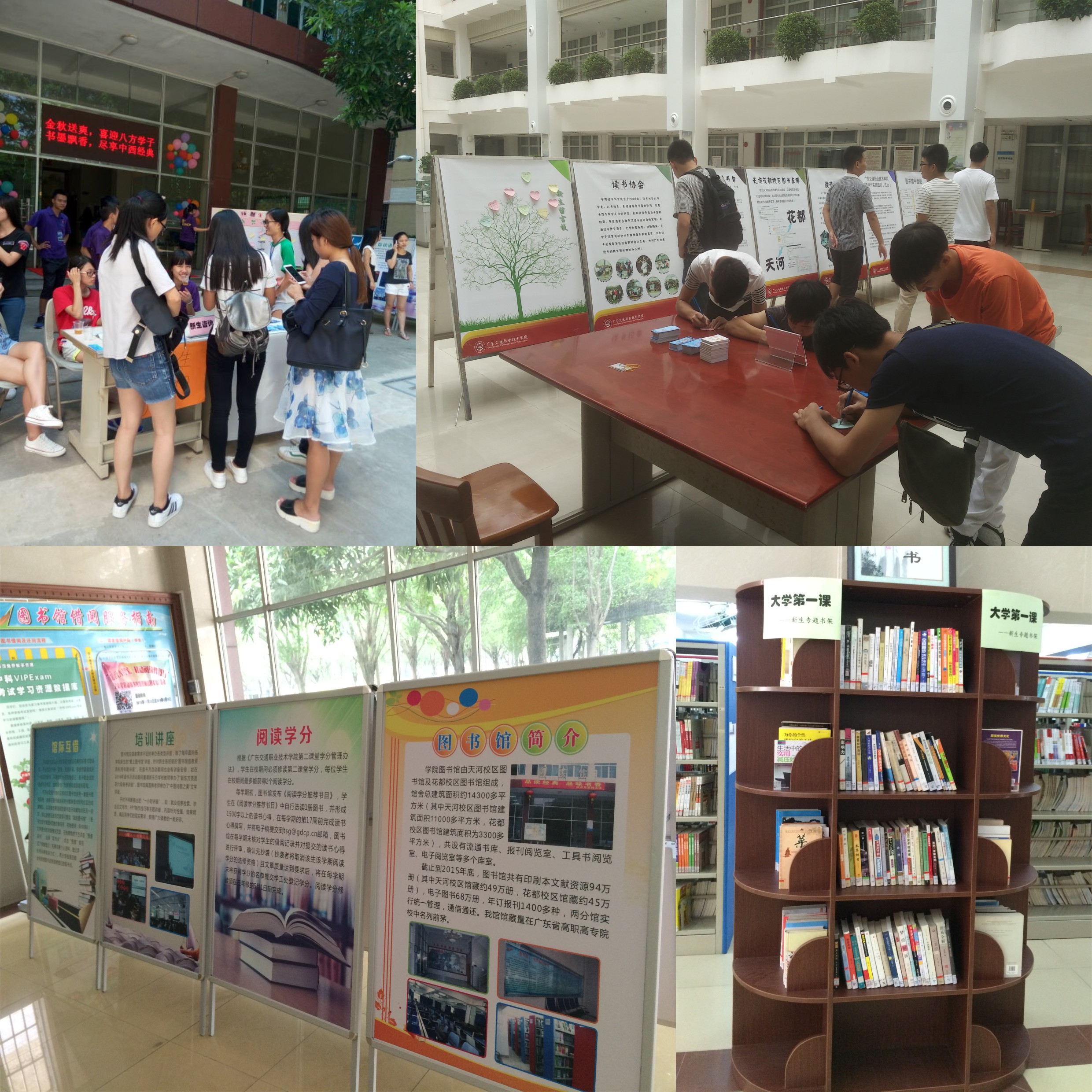 “无灯红花绿之喧,只以万千书卷相约”,图书馆门口,两排精心准备的宣传栏 ,展示着图书馆的全貌与各项特色服务;映入眼帘的电子屏上:新生欢迎词、图书馆简介、新生书目推荐、励志寄语等将读者领进了知识的海洋;此时,着紫色衣的图书义务管理员团队,正在带领着新生们去体验图书馆的每一个角落。这支爱书、嗜书,、无私服务、默默奉献,自发组建的义务管理员团队自成立以来,成为了图书馆一处美丽的风景线…
