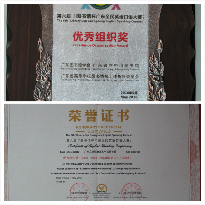 5月29日,第六届图书馆杯广东全民英语口语大赛在广东省立中山图书馆圆满结束,我校图书馆荣获“优秀组织奖”称号,全校共有176名同学参加该比赛,其中15图形图像制作2班的林俊鹏和15商务英语2班的梁玉霞两位同学在初赛中表现优异,分别获得优秀奖。