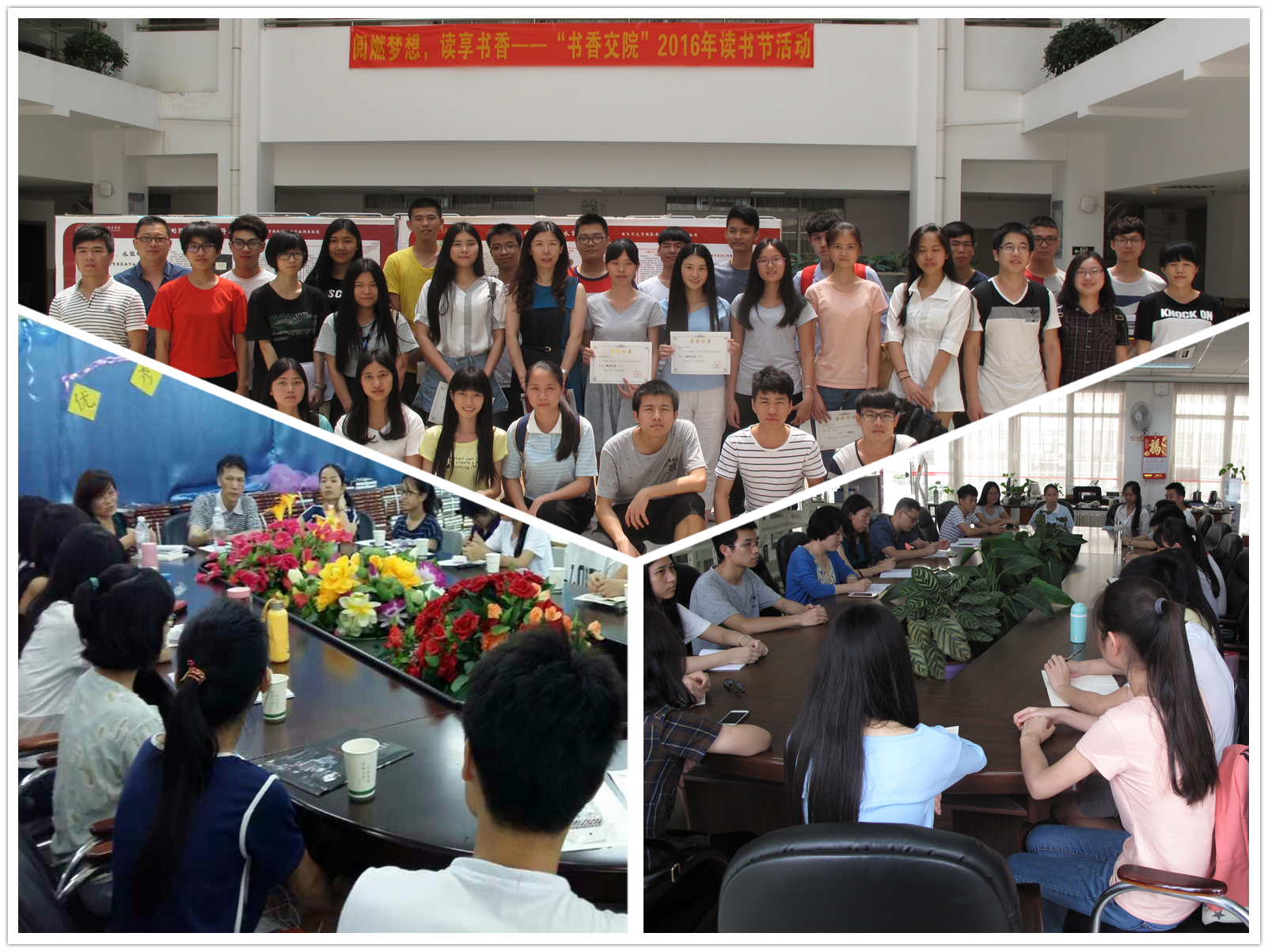 5月30日和6月1日,优秀读者座谈会分别在花都校区和天河校区图书馆顺利召开。图书馆馆长王玉鸿、副馆长毕玉修分别出席了两校区座谈会,各部门主任及相关老师、读者之星同学、猜灯谜获奖同学、英语口语大赛获奖同学以及读书协会代表参加了座谈会。