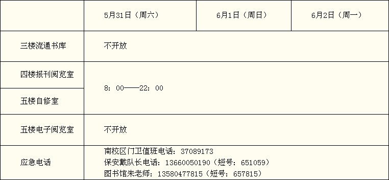 根据学院端午放假通知安排,同时为了方便读者的阅读需求,现将端午假期图书馆开放安排通知如下: